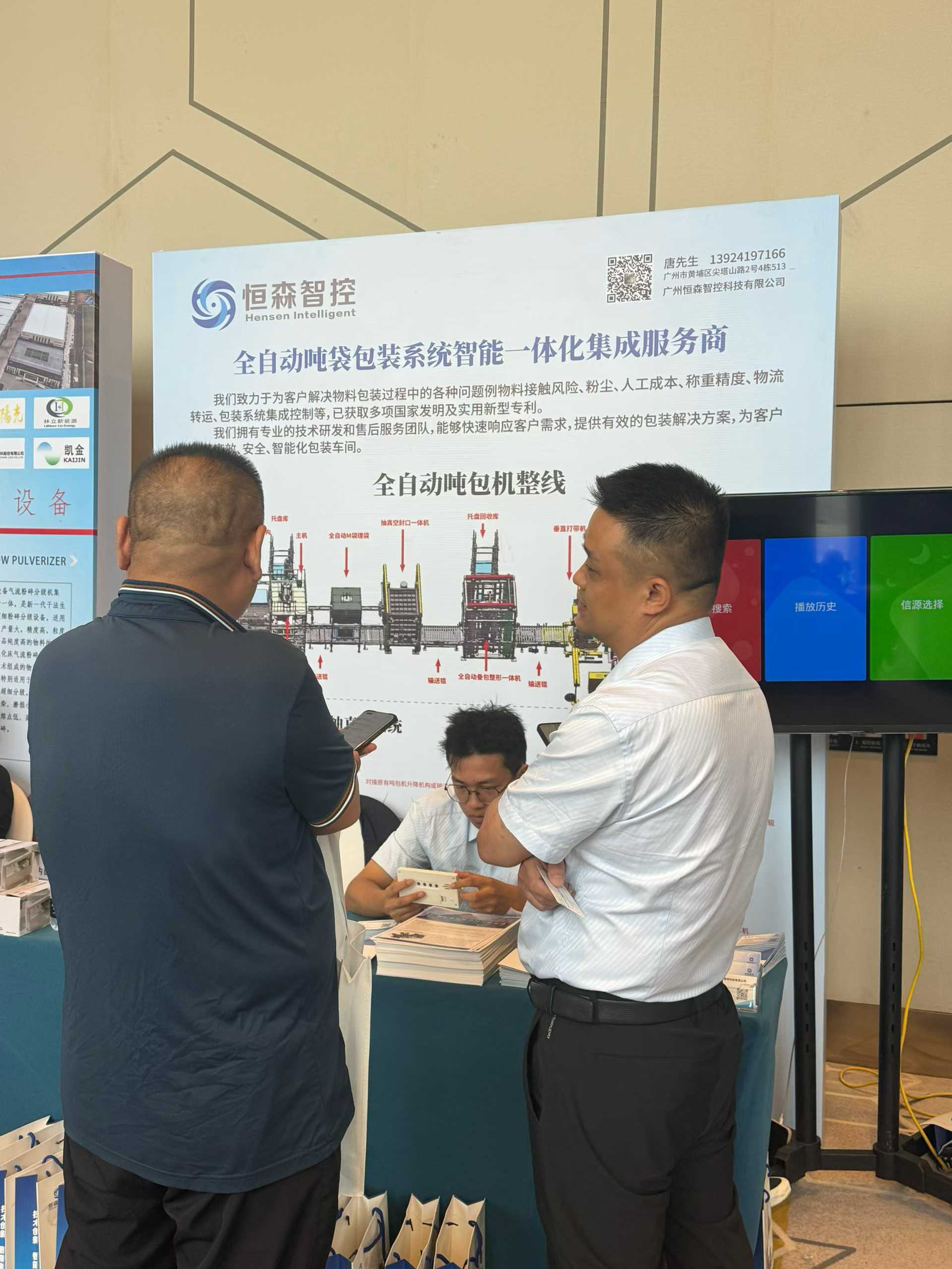 展會(huì)現(xiàn)場(chǎng),恒森智控展示的多個(gè)標(biāo)桿項(xiàng)目案例引發(fā)廣泛關(guān)注。全自動(dòng)噸袋包裝機(jī)作為我司自主研發(fā)的明星產(chǎn)品,憑借其高效、智能、環(huán)保的優(yōu)越性能,在展會(huì)現(xiàn)場(chǎng)大放異彩,成為了眾多參觀者關(guān)注的焦點(diǎn)。
